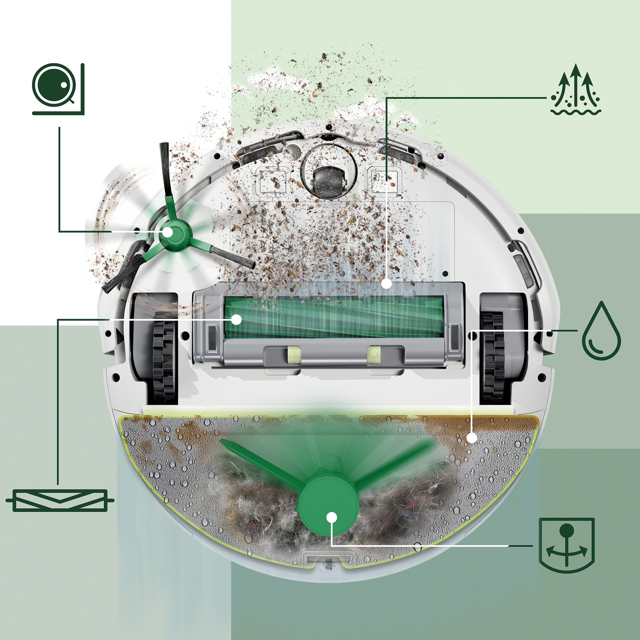 DustCompactor™ tihendab mustust kuni 60 päeva Tolmuimemine või tolmuimemine + põrandapesu Vaibatuvastus väldib vaipade pesemist Navigeerib süsteemi ClearView™ LiDAR abil