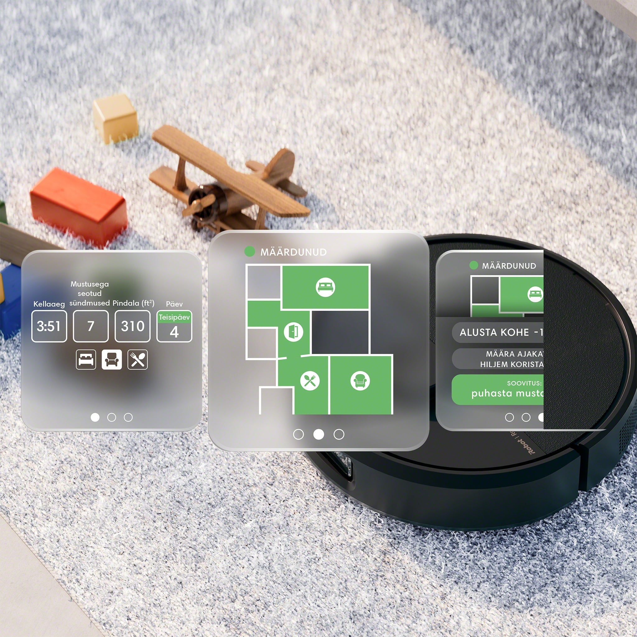 - Rakendus saadaval: Jah - Rakenduse nimi: Roomba Home - Wi-Fi: Jah - Ühilduv operatsioonisüsteem: - Bluetooth: Jah - Töönäidik: Jah - Filtri vahetuse indikaator: Saadaval rakenduses - Laadimisindikaator: Jah - Tolmunõu tühjendamise indikaator: Jah - Põhifilter: Jah - Soovitatud pinnad: Kõva põrand, vaip